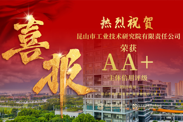 喜報(bào)|昆山工研院獲評(píng)AA+主體信用評(píng)級(jí)