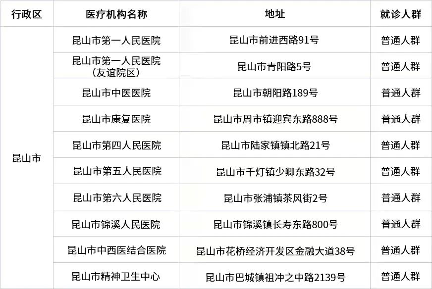昆山市開設(shè)發(fā)熱門診的醫(yī)療機構(gòu)名單